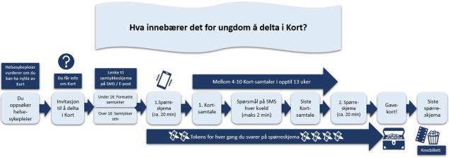 - Dagen etter at ungdommenes foresatte har samtykket til deltakelse, får ungdommen sitt første spørreskjema. Det tar ca. 15 minutter å svare på dette. Dette må besvares for at ungdommen skal regnes som deltaker i prosjektet.